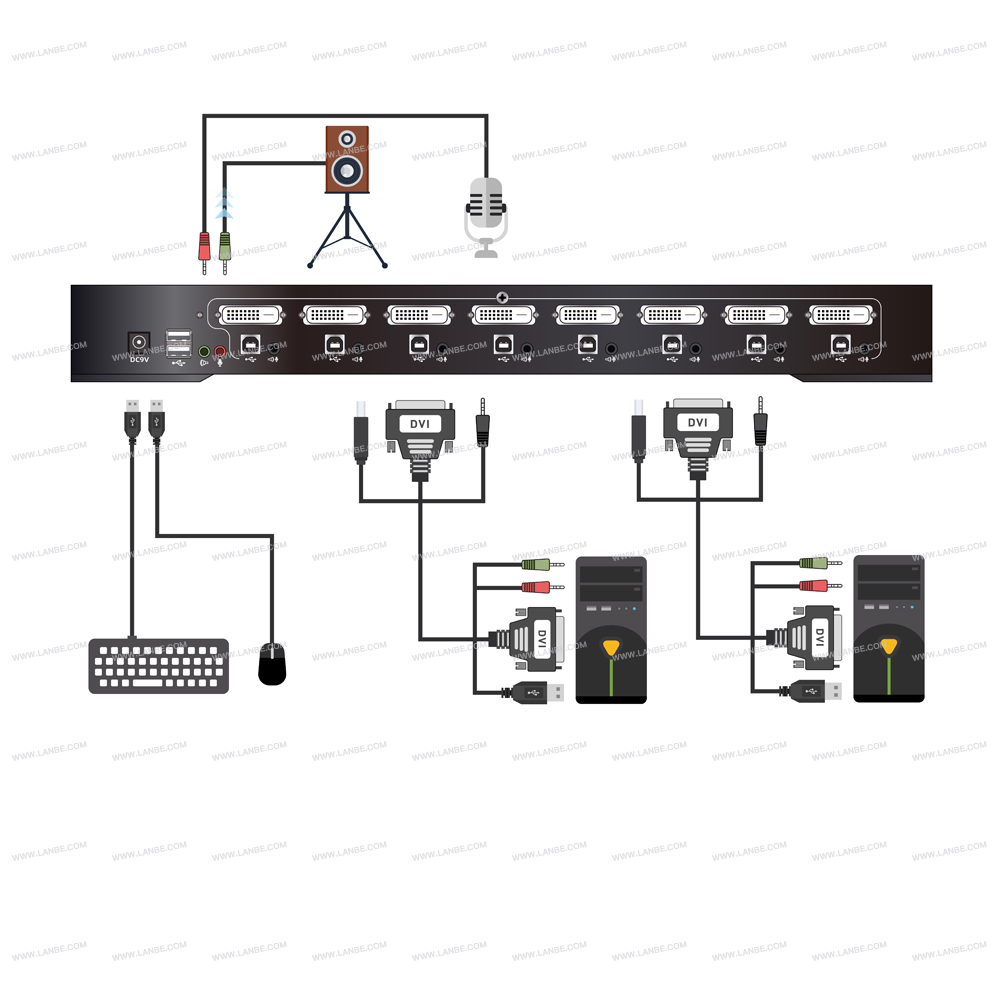 一組USB控制端可管理8臺(tái)DVI接口電腦