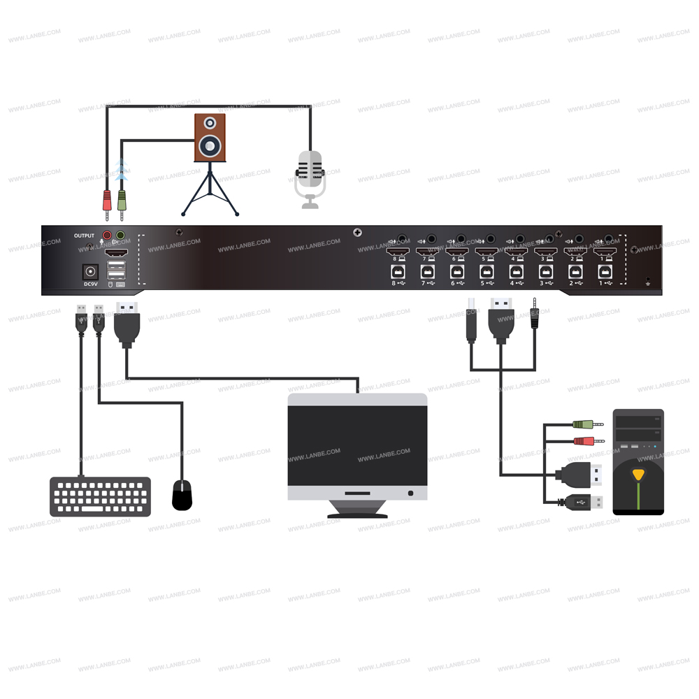 一組USB控制端可管理8臺(tái)HDMI接口電腦