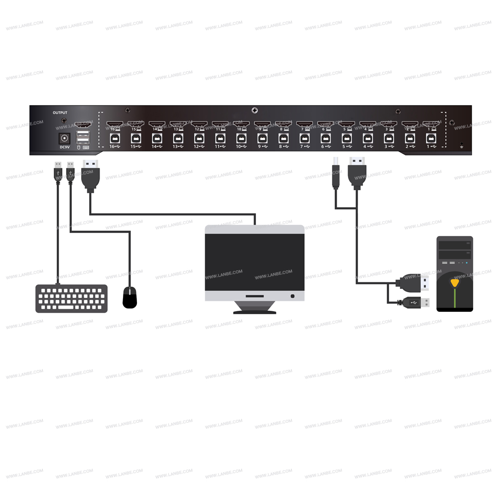 16端口HDMI機(jī)架式KVM多電腦切換器是一臺(tái)可允許管理人員從一組USB鍵盤、鼠標(biāo)或者一組PS2鍵盤、鼠標(biāo)及控制端訪問16HDMI電腦的多功能設(shè)備。