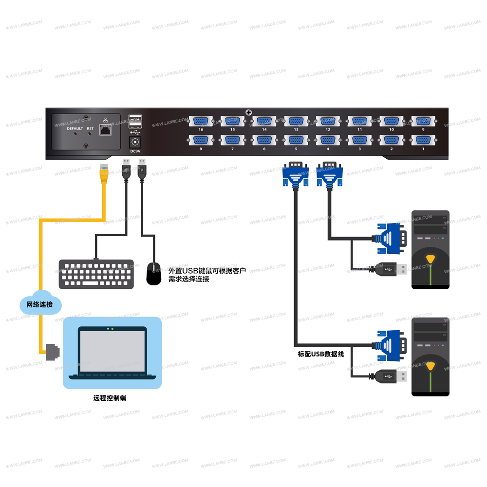 一組USB控制端可管理16臺(tái)VGA接口電腦?