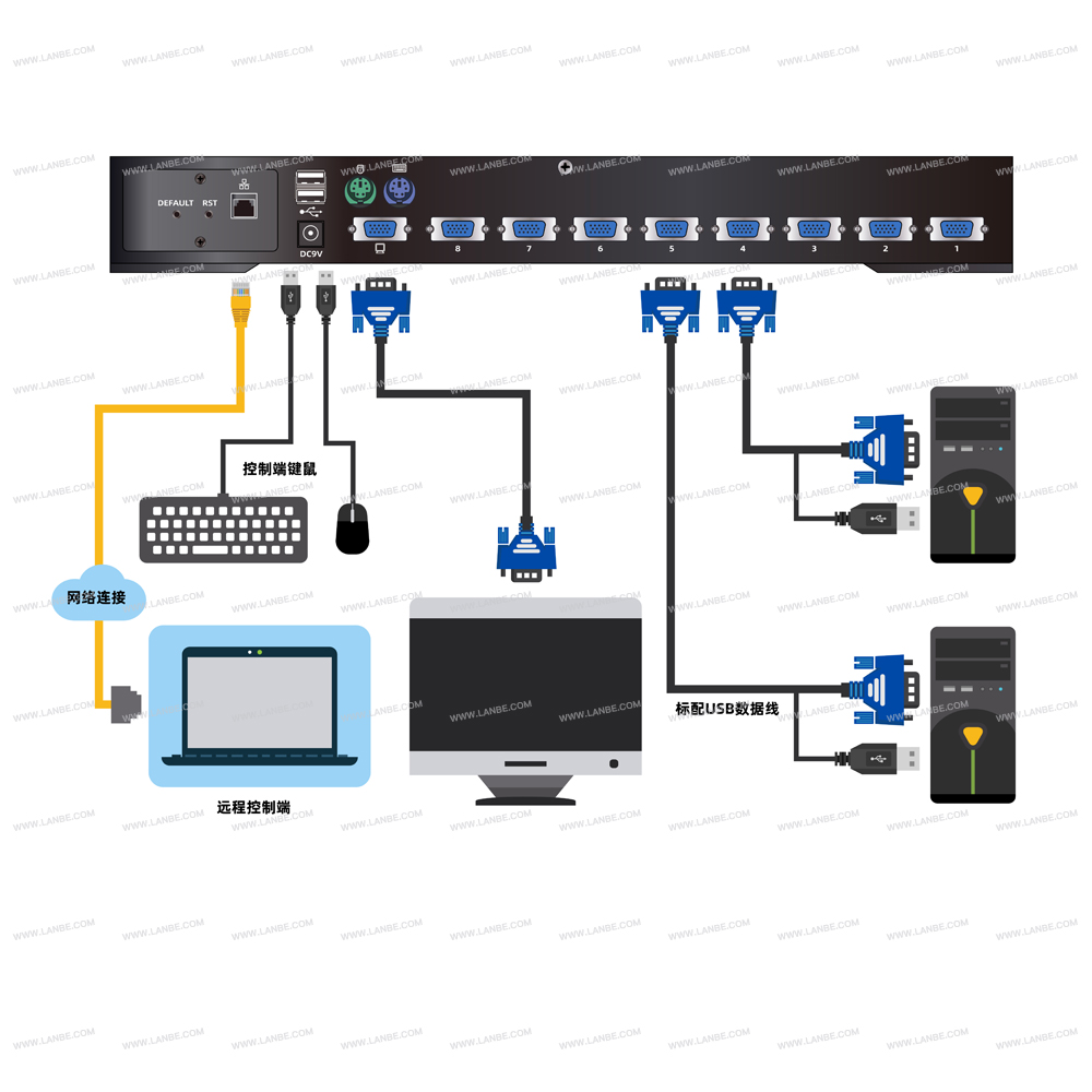 一組USB控制端可管理8臺VGA接口電腦